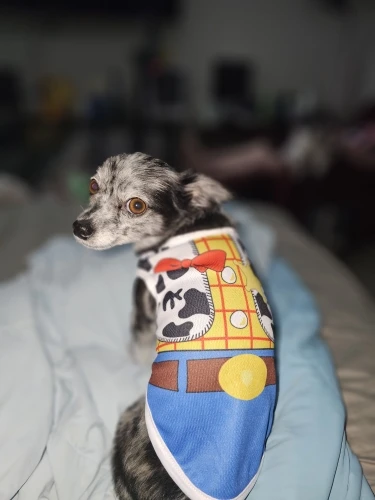 Muito fofo! O ajuste foi perfeito!!! Agora é só encontrar a versão Buzz Lightyear para o meu cachorro maior!! !