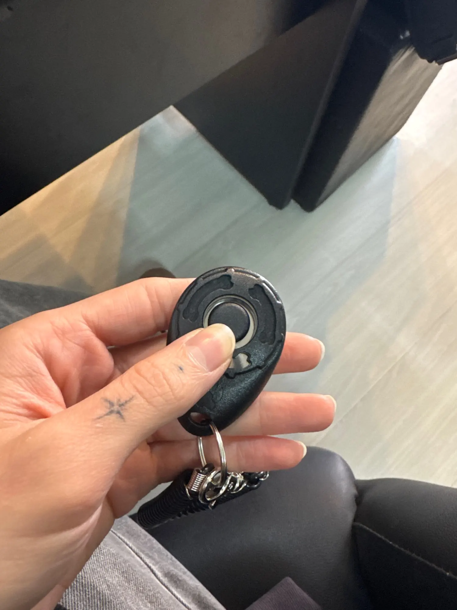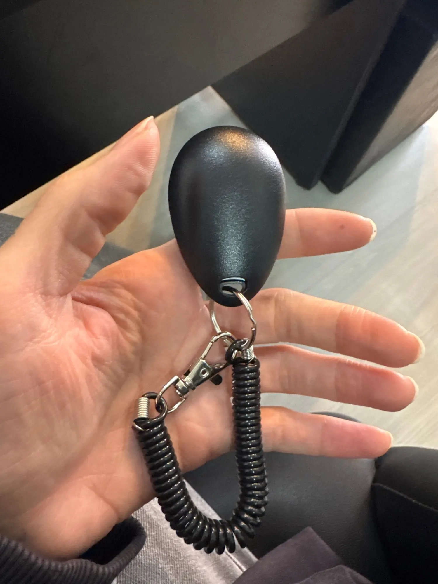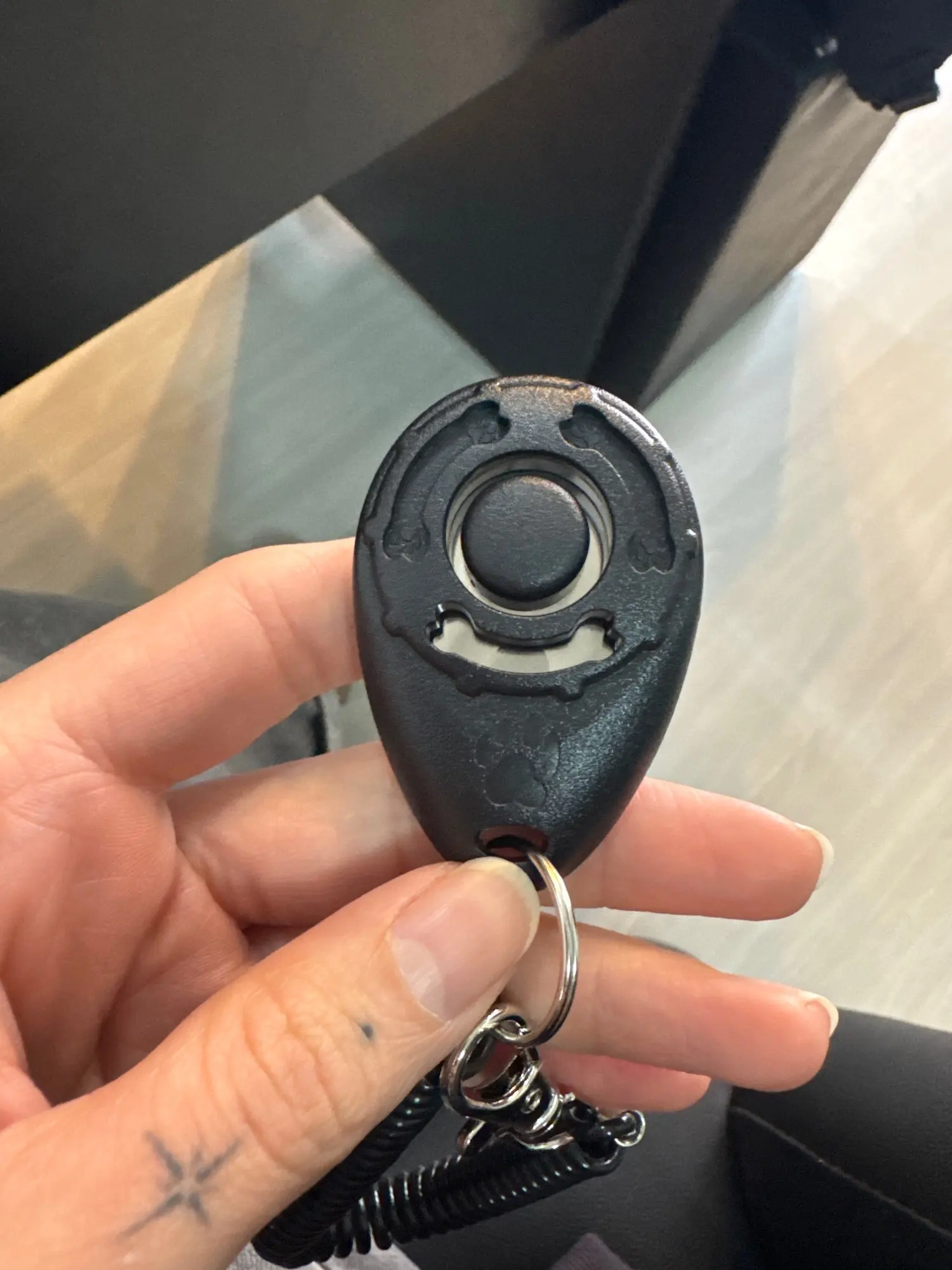 O funcionamento é simples, mas extremamente poderoso: ao pressionar o clicker, ele emite um som curto, consistente e preciso, que marca exatamente o comportamento desejado no momento em que acontece. Em seguida, o pet recebe uma recompensa (petisco, carinho ou brinquedo). Com a repetição, o animal aprende com muito mais rapidez, associando o som a algo positivo. 🎯✨