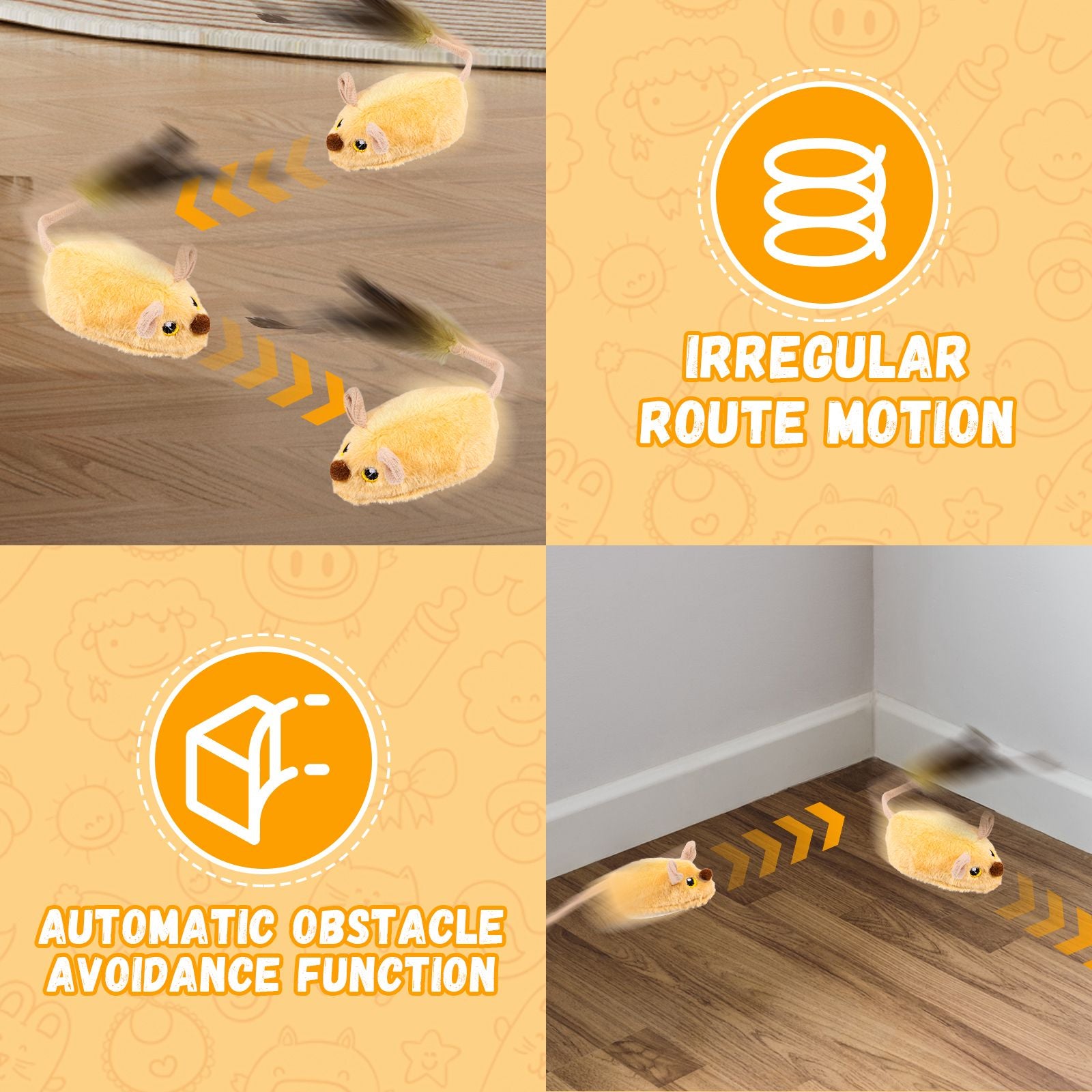 Mouse simulado: este brinquedo interativo para gatos é projetado com formato de mouse realista, com movimento de rota irregular e prevenção automática de obstáculos, simulando o movimento de presas reais e estimulando o instinto de caça e brincadeira do gato