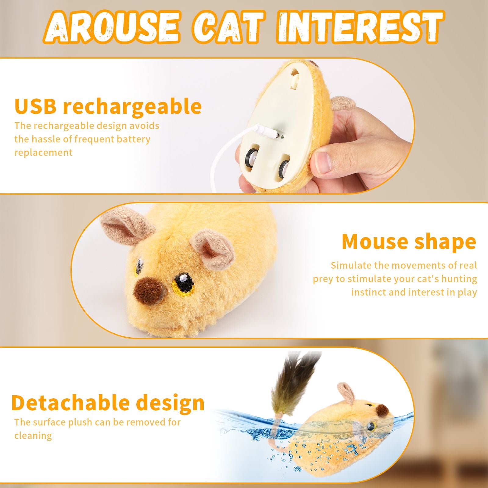 Fácil de começar: este brinquedo de mouse teaser elétrico pode ser iniciado com apenas um toque, fácil para os gatos interagirem com o brinquedo, fácil de usar