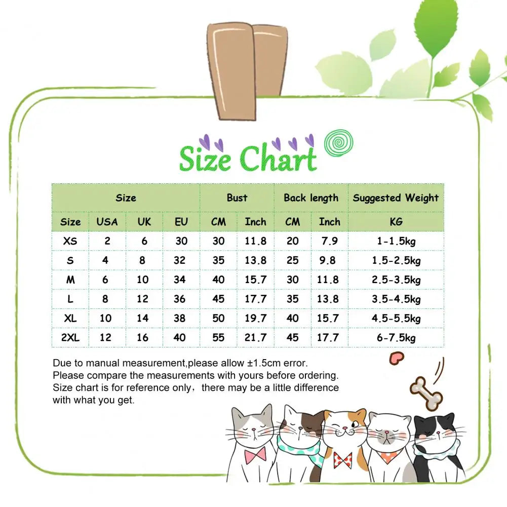 Tamanho: S, Busto: 35 cm/13,8", Comprimento das costas: 25 cm/9,8", Peso sugerido: 1,5 kg-2,5 kg (aprox.)