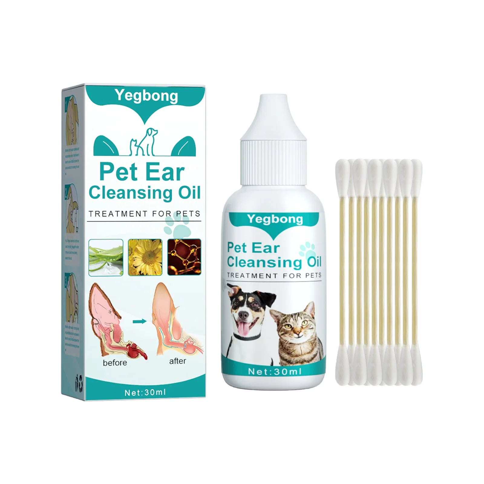 4. 【Ampla aplicação】Não apenas solta a cera e remove detritos do canal auditivo, mas também seca o canal auditivo do seu animal de estimação e melhora a audição.
