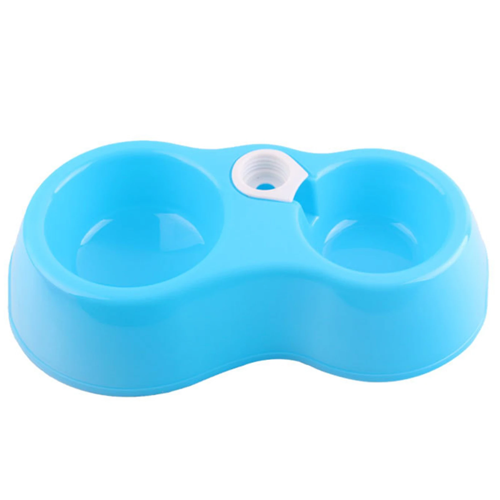 O design da tigela dupla pode atender à necessidade de beber água enquanto come.