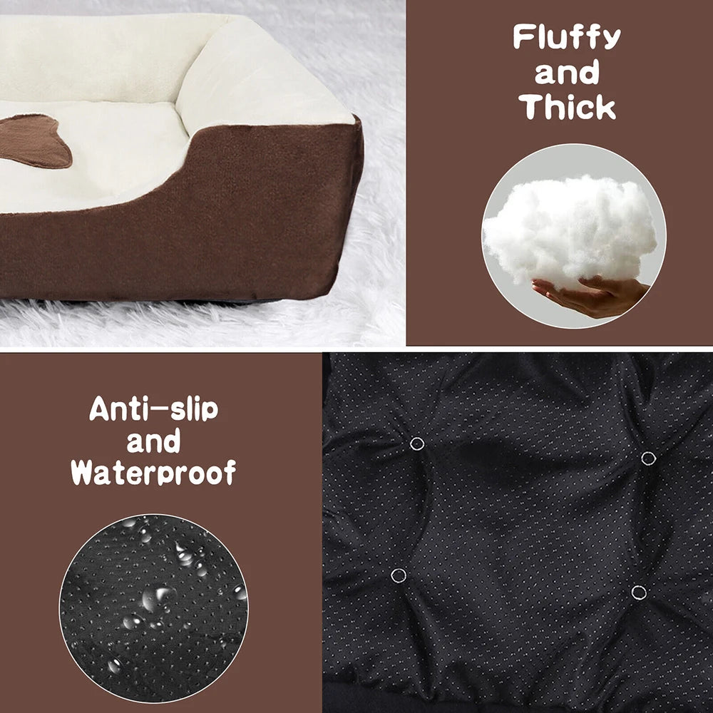Material Premium: Cama retangular para animais de estimação com lã supermacia torna a pele mais confortável, acolchoada e com enchimento extra de algodão PP mantém o formato da cama ao longo do tempo. Opções de 2 tamanhos, adequadas para animais de estimação pequenos, médios e grandes